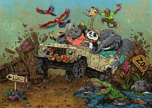 Jungle Perch by Day of the Dead Artist David Lozeau, Day of the Dead Art, Dia de los Muertos Art, Dia de los Muertos Artist