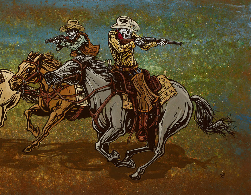 Cattle Raid by Day of the Dead Artist David Lozeau, Day of the Dead Art, Dia de los Muertos Art, Dia de los Muertos Artist